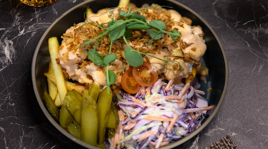 HomeKarstie ēdieniDirty fry Dirty fry€8.50 Kartupeļi frī, kraukšķīgā vistas gaļa, asā mērce, marinēti gurķi, сoleslaw salāti (Alergēni: 3) Category: Karstie ēdieni Preces ID:27708 Saistītie produkti Cepti dārzeņi €3.50 Liellopu filejas steiks €24.50 Rīsi €3.00
